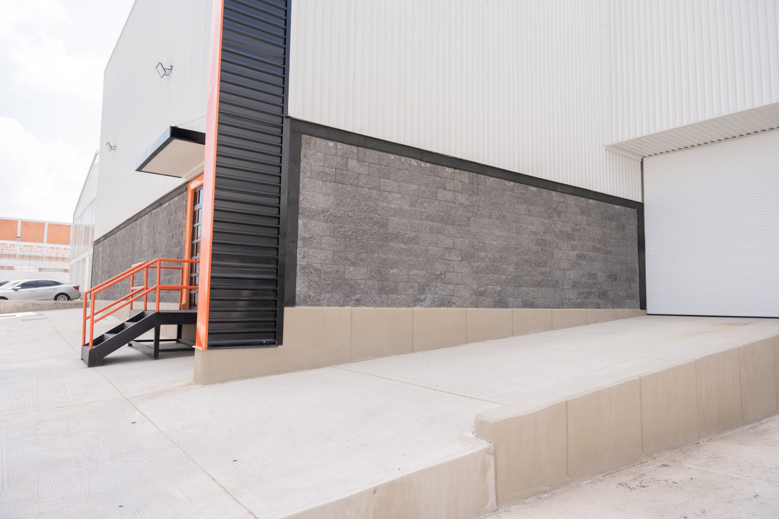 Muros laterales: 3 metros con block hueco cara de piedra y lámina pintro calibre 24, color blanco.